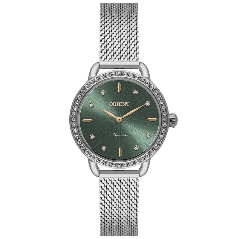 DESCRIÇÃO DO PRODUTO: Caixa: AçoPulseira: Malha de Aço MeshMedida da caixa: 30MMVidro: Cristais de SafiraAlimentação do maquinário: BateriaResistência à água: 30 mfunções: AnalógicoMostrador Verde com pedras e detalhes em douradoAro externo de pedrasFundo de PressãoMaquinário Japonês Garantia de 1 ano