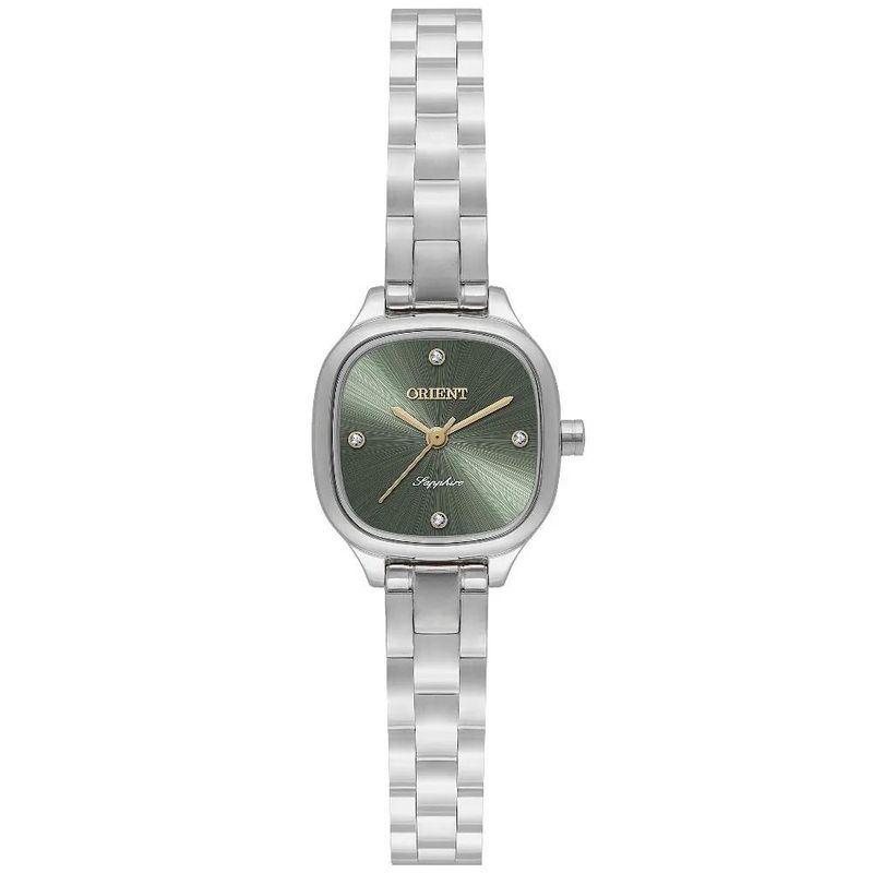 DESCRIÇÃO DO PRODUTO: Caixa: AçoPulseira: AçoMedida da caixa: 20MM x 20MMVidro: Cristais de SafiraAlimentação do maquinário: BateriaResistência à água: 30mfunções: AnalógicoMostrador Verde com pedras e detalhes em douradoFundo de PressãoMecanismo Japonês Garantia de 1 ano