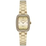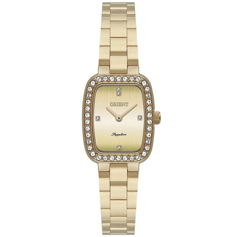 DESCRIÇÃO DO PRODUTO: Caixa: AçoPulseira: AçoMedida da caixa: 22MM x 27MMVidro: SafiraAlimentação do maquinário: BateriaResistência à água: 30mfunções: AnalógicoMostrador Dourado com pedrasAro externo com pedrasFundo de PressãoMecanismo Japonês Garantia de 1 ano