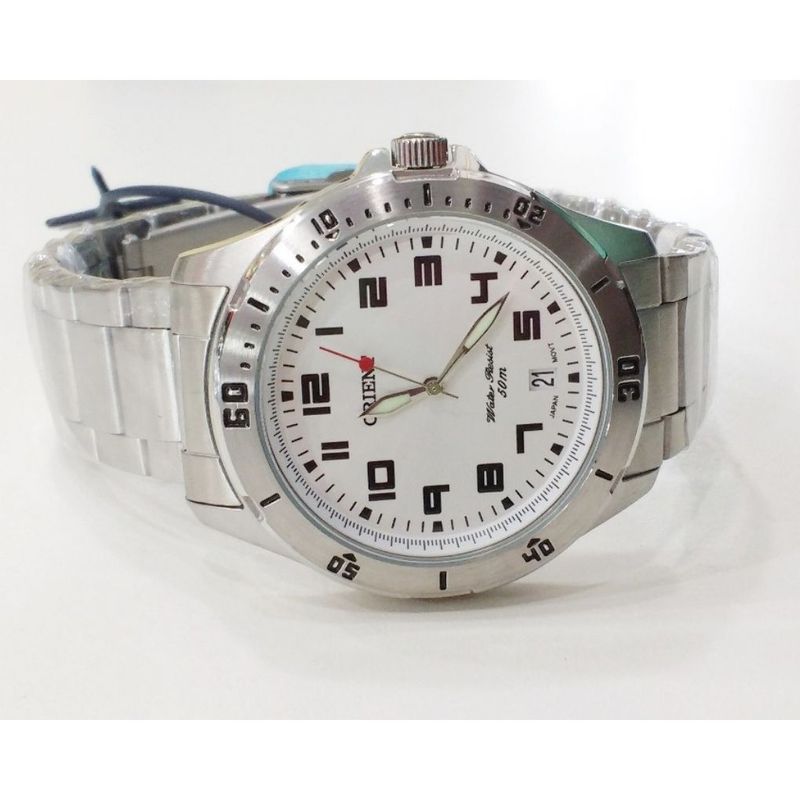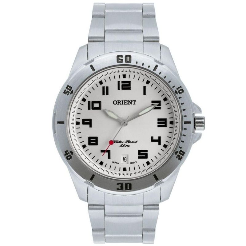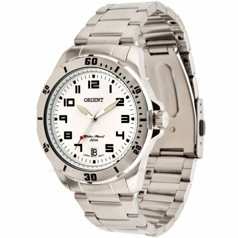 DESCRIÇÃO DO PRODUTO Gênero: Masculino Estilos: Esportivo, Casual urbano Funções: Com Calendário, Quartz analógico e prova dágua 50 metros - 5 ATM Cor do mostrador: Branco com números pretos Vidro: Cristal mineral resistente a arranhões Diâmetro da caixa: 43 mm de largura x 49 mm de altura Tamanho médio grande Espessura da caixa: 10 mm Material da caixa: Aço inoxidável Tampa do fundo: Rosqueada Material de pulseira: Aço inoxidável Comprimento do Relógio: 23 cm ATM (Water Resistant): 5 ATM / 50 Metros Contato com água: Natação, piscinas