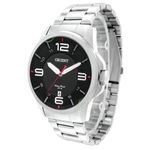 CARACTERÍSTICAS DO RELÓGIO: Gênero: Para homem Cor: Prata Material da pulseira: Aço Inoxidável Material da caixa: Aço Inoxidável Tamanho da caixa: 45 mm Tipo da tampa traseira do relógio: Rosqueada A prova d'água: Sim Nível de resistência à água: 5 Atm Calendário: Sim Marcadores: Com Iluminator