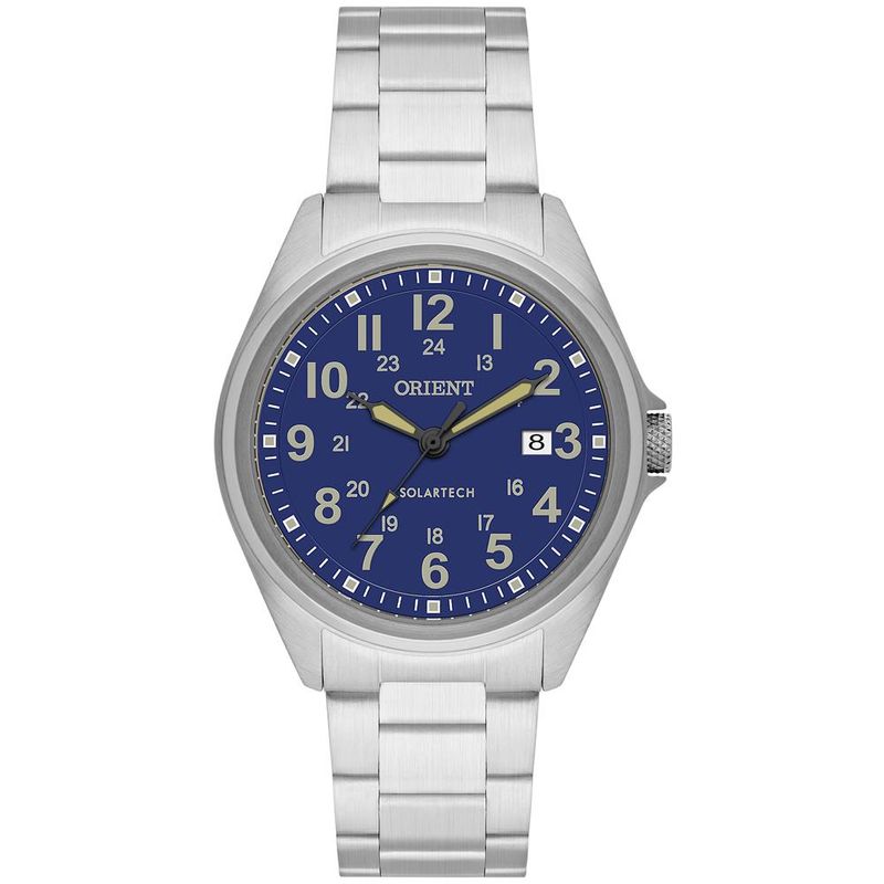 DESCRIÇÃO DO PRODUTO: Vidro: Cristal MineralFunções: Calendario, Analógico, SolarResistencia à água: 100 MCaracterísticas: com caixa Aço inoxidável e pulseira Aço inoxidávelDiâmetro da caixa: 4,0 cmAlimentação do Maquinário: Energia SolarMostrador Azul com todos os NúmerosFundo RosqueadoLinha: Orient SolartechGarantia de 1 ano