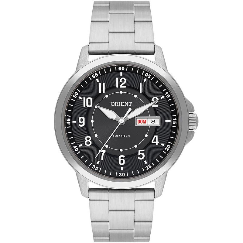 DESCRIÇÃO DO PRODUTO: Vidro: Cristal MineralFunções: Calendario Mensal e Semanal (Em português e Inglês), Analógico, SolarResistencia à água: 50 MCaracterísticas: com caixa Aço inoxidável e pulseira Aço inoxidávelDiâmetro da caixa: 4,2 cmAlimentação do Maquinário: Energia SolarMostrador Preto com NúmerosFundo de PressãoLinha: Orient Solartech NeosportsGarantia de 1 ano