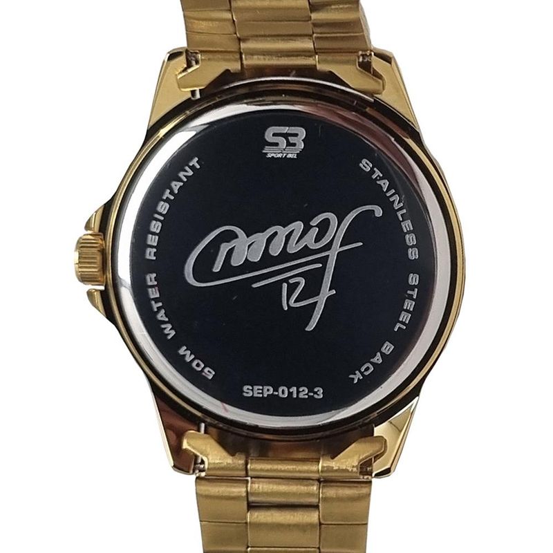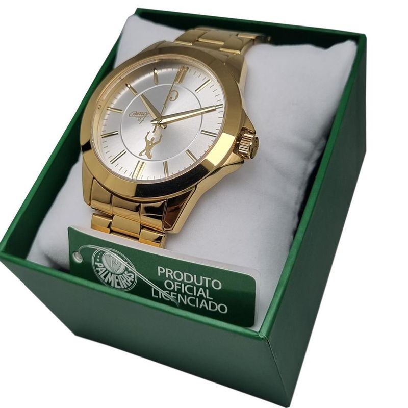 DESCRIÇÃO DO PRODUTO: Caixa de MetalPulseira de AçoFundo de PressãoVidro de Cristal MineralResistência à água: 5 atmDiâmetro da caixa: 45.00 MMFunções: AnalógicoAlimentação do maquinário: BateriaTema: Clube de FutebolMostrador Prateado com simbolo do Palmeiras e Assinatura do Goleiro MarcosRelógio Oficial do VerdãoEdição Especial Comemorativa Goleiro Marcos 12Garantia de 1 anoPRODUTO OFICIAL LICENCIADO SOCIEDADE ESPORTIVA PALMEIRAS