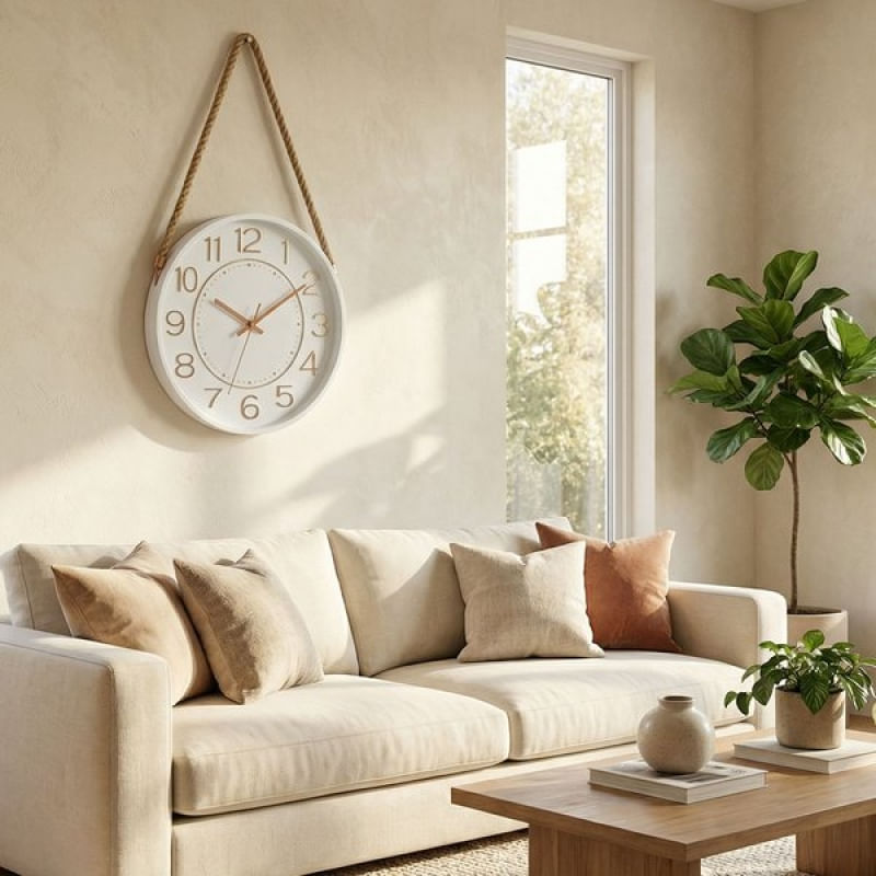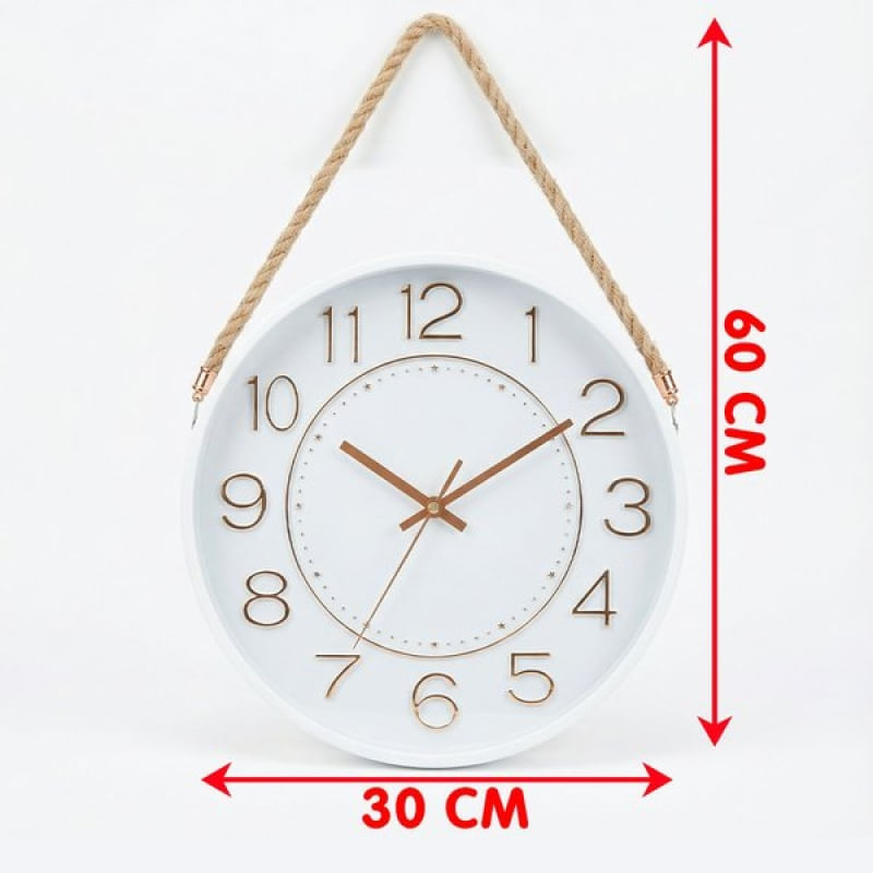 Relógio Parede Decorativo Redondo Branco Com Alça Corda 30cm - Leve charme, elegância e aconchego para sua decoração com o Relógio de Parede Decorativo Redondo Branco com Alça de Corda. Seu design clean aliado ao detalhe em corda traz um toque rústico moderno, perfeito para ambientes acolhedores e cheios de personalidade Diferenciais do Produto: Design clean e elegante Cor branca que combina com qualquer ambiente Alça de corda decorativa, estilo rústico/náutico Tamanho ideal de 30 cm, discreto e sofisticado Embalagem: 1x Relógio De Parede Redondo Com Alça 30cm Características Gerais do Produto: • Material: Plástico ABS • Modelo: Relógio De Parede • Cor: Branco • Dimensões aproximadas: Diâmetro 30cm • Potência: 1,5v Garantia: • Garantia contra avarias no transporte