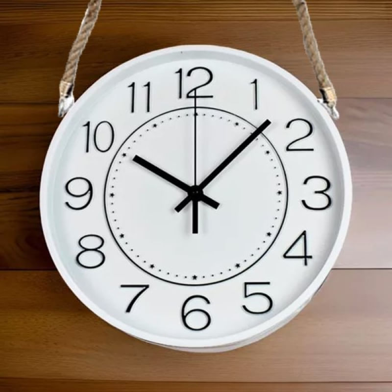 Relógio Parede Moderno Redondo Serrano Branco Com Corda 30cm - O Relógio de Parede que Transforma sua Decoração! Descubra o equilíbrio perfeito entre função e beleza com nosso elegante relógio de parede! Projetado para complementar qualquer estilo de decoração, este relógio não apenas adiciona um toque de sofisticação aos seus espaços, mas também mantém você sempre pontual; ESPECIFICAÇÕES : Cores: Branco e Preto; Material: Plástico ABS, Vidro e Sisal; Diâmetro: 30cm; Tipo De Alimentação: 1 Pilha AA 1,5v; Conteúdo Da Embalagem: 1 Relógio De Parede Branco Com Corda De Sisal; Pilha Não Incluída; Características Gerais do Produto: • Material: Vidro; Plástico ABS • Modelo: Relógio De Parede White • Cor: Branco; Preto • Dimensões aproximadas: Diâmetro 30cm Garantia: • Garantia contra avarias no transporte