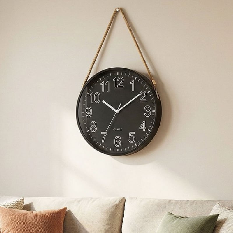 Relógio Parede Redondo Decorativo Preto Com Alça Corda 25cm - Leve charme, elegância e aconchego para sua decoração com o Relógio de Parede Decorativo Redondo Preto com Alça de Corda. Seu design clean aliado ao detalhe em corda traz um toque rústico moderno, perfeito para ambientes acolhedores e cheios de personalidade Diferenciais do Produto: Design clean e elegante Cor Preto que combina com qualquer ambiente Alça de corda decorativa, estilo rústico/náutico Tamanho ideal de 25 cm, discreto e sofisticado Embalagem: 1x Relógio De Parede Redondo Preto Com Alça 25cm Características Gerais do Produto: • Material: Plástico ABS • Modelo: Relógio De Parede • Cor: Preto • Dimensões aproximadas: Diâmetro 25cm • Potência: 1,5v Garantia: • Garantia contra avarias no transporte
