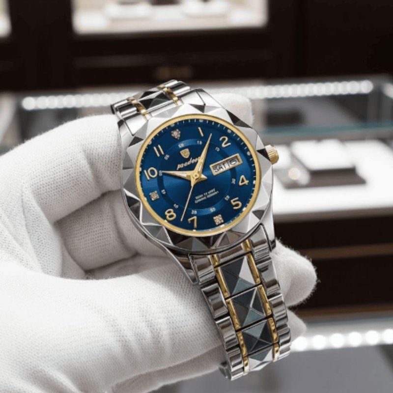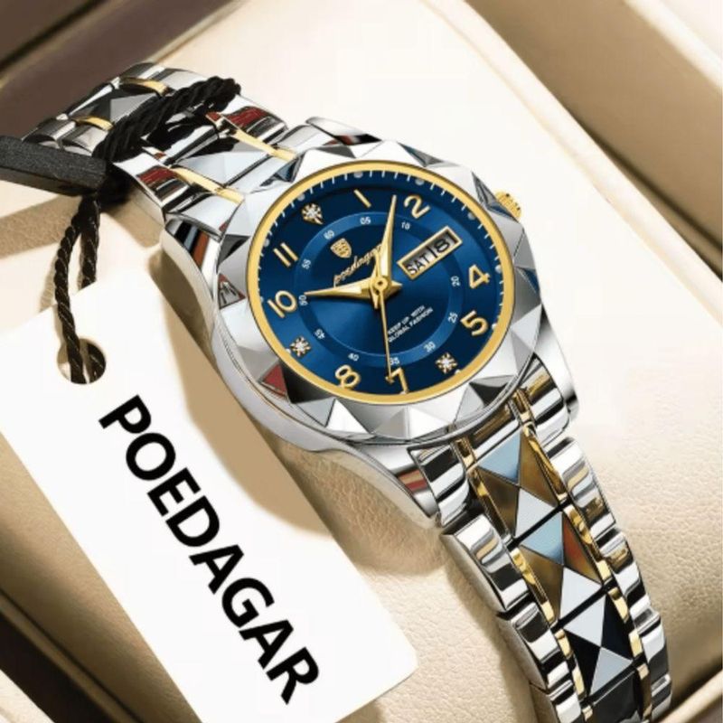 Relógio Poedar 2026 Lançamento Feminino Luxo ExtremoRelógio Feminino Luxo Poedagar (Calendário Completo)Sofisticação Diamantada e Funcionalidade EssencialEste Relógio Feminino Poedagar eleva o conceito de luxo acessível, sendo a escolha perfeita para a mulher que exige funcionalidade precisa sem abrir mão do brilho e da elegância. Seu design é uma verdadeira joia de pulso, combinando o clássico tom de aço com o requinte do dourado.Características e Construção ExclusivasDesign Multifacetado: A caixa e a pulseira apresentam um inovador design facetado (em formato de diamante ou pirâmide), que captura a luz e garante um brilho excepcional a cada movimento.Mostrador Azul Profundo:O mostrador azul vibrante cria um contraste deslumbrante com os ponteiros dourados e os marcadores de hora em strass ou diamantes sintéticos, adicionando um toque de glamour.Calendário Completo:Essencial para o dia a dia, o relógio exibe de forma clara e legível tanto o Dia do Mês (Data) quanto o Dia da Semana, garantindo que você tenha todas as informações à mão.Resistência à Água:Projetado para acompanhar a rotina moderna, este modelo é À Prova D'Água, oferecendo tranquilidade e durabilidade contra respingos, chuva ou breves imersões.Acabamento Premium:A combinação de aço inoxidável em dois tons (prata e dourado) garante resistência, conforto e um visual que nunca sai de moda.Um Acessório que InspiraO Relógio Poedagar é ideal para compor looks executivos, casuais sofisticados ou trajes de festa. Ele não apenas marca o tempo com precisão, mas se torna o ponto focal do seu estilo, refletindo bom gosto e confiança.Adquira este relógio Poedagar e experimente a união perfeita entre luxo, brilho e funcionalidade.Relógio Feminino Luxo Poedagar (Calendário Completo)Sofisticação Diamantada e Funcionalidade EssencialEste Relógio Feminino Poedagar eleva o conceito de luxo acessível, sendo a escolha perfeita para a mulher que exige funcionalidade precisa sem abrir mão do brilho e da elegância. Seu design é uma verdadeira joia de pulso, combinando o clássico tom de aço com o requinte do dourado.Características e Construção ExclusivasDesign Multifacetado: A caixa e a pulseira apresentam um inovador design facetado (em formato de diamante ou pirâmide), que captura a luz e garante um brilho excepcional a cada movimento.Mostrador Azul Profundo:O mostrador azul vibrante cria um contraste deslumbrante com os ponteiros dourados e os marcadores de hora em strass ou diamantes sintéticos, adicionando um toque de glamour.Calendário Completo:Essencial para o dia a dia, o relógio exibe de forma clara e legível tanto o Dia do Mês (Data) quanto o Dia da Semana, garantindo que você tenha todas as informações à mão.Resistência à Água:Projetado para acompanhar a rotina moderna, este modelo é À Prova D'Água, oferecendo tranquilidade e durabilidade contra respingos, chuva ou breves imersões.Acabamento Premium:A combinação de aço inoxidável em dois tons (prata e dourado) garante resistência, conforto e um visual que nunca sai de moda.Um Acessório que InspiraO Relógio Poedagar é ideal para compor looks executivos, casuais sofisticados ou trajes de festa. Ele não apenas marca o tempo com precisão, mas se torna o ponto focal do seu estilo, refletindo bom gosto e confiança.Adquira este relógio Poedagar e experimente a união perfeita entre luxo, brilho e funcionalidade.
