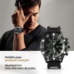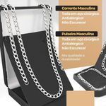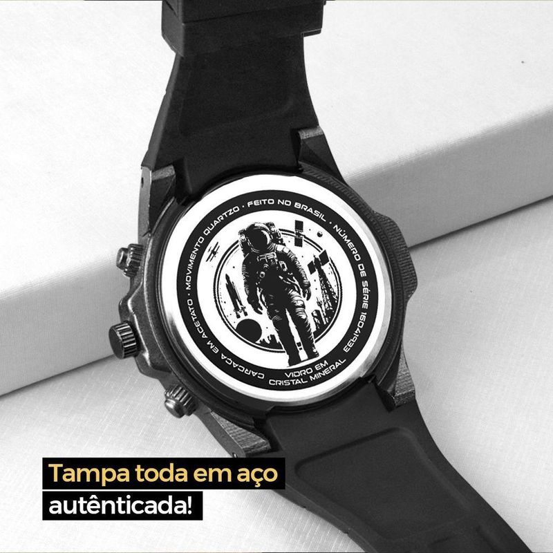 Relogio Preto Aço + Oculos Sol Pesado Ponteiro Preto Ajustavel Presente Inoxidável Social AutenticoKit de Acessórios Masculinos Orizom Spaceman - Relógio, Óculos de Sol, Cordão, Pulseira e Caixa PremiumO Kit Orizom Spaceman é a escolha perfeita para homens que buscam estilo e exclusividade. Com acabamento premium e design sofisticado, este conjunto é ideal para presentear ou complementar o visual com elegância.O kit inclui:- Relógio masculino analógico Orizom modelo Spaceman, com maquinário em aço inoxidável e pintura eletrostática preta (black piano). Seu design redondo e mostrador preto, assim como a pulseira ajustável em silicone preto, o tornam adequado para qualquer dimensão de pulso. A tampa blindada traz uma arte exclusiva da linha Spaceman, comprovando autenticidade e exclusividade.- Óculos de sol Orizom modelo Spaceman vintage, em formato oval e totalmente preto, com armação e hastes em acetato. Seus detalhes de metal na parte inferior acrescentam um toque de sofisticação ao design, enquanto as lentes com proteção UV garantem segurança.- Cordão Grumet em aço inox prata, com aproximadamente 65 cm, ideal para um visual moderno e clássico.- Pulseira combinando com o cordão Grumet, também em aço inox prata, com cerca de 25 cm, completando o conjunto com harmonia e estilo.- Caixa ultra premium Orizom modelo Spaceman, projetada para guardar o relógio e os acessórios com segurança e organização, sendo uma excelente opção para presente.O Kit Orizom Spaceman combina acessórios de alta qualidade e design refinado, sendo a escolha ideal para quem valoriza autenticidade, durabilidade e bom gosto. Adquira já o seu e eleve o seu estilo!