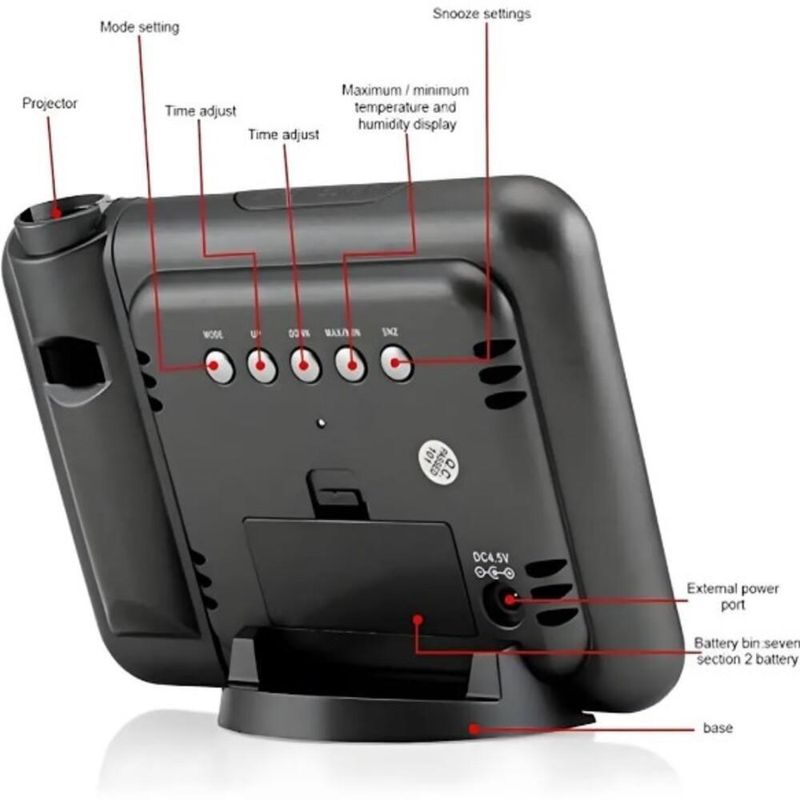 Relogio Projetor Despertador Led Digital Hora Temperatura Estacao Metereologica De Mesa Giratorio Previsao Tempo SonecaDespertador com Projetor de Horas – Inovação e Conforto para o Seu Dia a DiaDescrição: Este despertador multifuncional combina design moderno com alta tecnologia, oferecendo projeção de horário ajustável, leitura de clima e funcionalidades extras que tornam sua rotina mais prática e confortável. Ideal para quem busca um relógio com estilo e recursos úteis para o cotidiano.Principais Características:Projeção Rotativa de Horas: Projete as horas no teto, parede ou em superfícies horizontais, com ajuste de foco e inclinação de até 180° para máxima conveniência.Display LED Colorido: Grande painel iluminado com exibição clara de informações, incluindo data, temperatura, umidade e tendências climáticas.Função Despertador: Som que aumenta gradativamente caso não seja desligado, proporcionando um despertar mais suave e eficaz.Indicadores Climáticos: Mostra se o clima está ensolarado, nublado ou chuvoso, além de um medidor de tendência barométrica.Medidor de Temperatura e Umidade: Monitore as condições ambientais em tempo real, com faixas amplas de leitura:Temperatura: 050°C / 32122°F.Umidade: 20%RH~99%RH.Função Calendário: Marcação dos dias da semana (de segunda a domingo).Especificações Técnicas:Alimentação: 2 pilhas AAA (não inclusas).Dimensões:Altura: 10 cm.Largura: 2 cm.Comprimento: 14 cm.Distância máxima de projeção: 1,5 metros.Benefícios:Conveniência: Consulte a hora projetada sem sair da cama.Praticidade: Compacto e funcional, combina várias ferramentas em um único dispositivo.Modernidade e Estilo: Design elegante com painel LED e projeção ajustável.Garantia:3 meses contra defeitos de fabricação.Transforme sua rotina com este despertador inovador e multifuncional, ideal para garantir praticidade e conforto em qualquer ambiente!Despertador com Projetor de Horas – Inovação e Conforto para o Seu Dia a DiaDescrição: Este despertador multifuncional combina design moderno com alta tecnologia, oferecendo projeção de horário ajustável, leitura de clima e funcionalidades extras que tornam sua rotina mais prática e confortável. Ideal para quem busca um relógio com estilo e recursos úteis para o cotidiano.Principais Características:Projeção Rotativa de Horas: Projete as horas no teto, parede ou em superfícies horizontais, com ajuste de foco e inclinação de até 180° para máxima conveniência.Display LED Colorido: Grande painel iluminado com exibição clara de informações, incluindo data, temperatura, umidade e tendências climáticas.Função Despertador: Som que aumenta gradativamente caso não seja desligado, proporcionando um despertar mais suave e eficaz.Indicadores Climáticos: Mostra se o clima está ensolarado, nublado ou chuvoso, além de um medidor de tendência barométrica.Medidor de Temperatura e Umidade: Monitore as condições ambientais em tempo real, com faixas amplas de leitura:Temperatura: 050°C / 32122°F.Umidade: 20%RH~99%RH.Função Calendário: Marcação dos dias da semana (de segunda a domingo).Especificações Técnicas:Alimentação: 2 pilhas AAA (não inclusas).Dimensões:Altura: 10 cm.Largura: 2 cm.Comprimento: 14 cm.Distância máxima de projeção: 1,5 metros.Benefícios:Conveniência: Consulte a hora projetada sem sair da cama.Praticidade: Compacto e funcional, combina várias ferramentas em um único dispositivo.Modernidade e Estilo: Design elegante com painel LED e projeção ajustável.Garantia:3 meses contra defeitos de fabricação.Transforme sua rotina com este despertador inovador e multifuncional, ideal para garantir praticidade e conforto em qualquer ambiente!