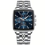 Relógio Quadrado Em Aço Inoxidável Para Homens Com Cronógrafo À Prova Da Água AzulDescubra o requinte e a sofisticação com este é uma verdadeira obra-prima para homens que desejam marcar presença em qualquer ocasião. Este acessório não é apenas um cronógrafo À Prova Da Água, mas um símbolo de estilo com seu impressionante mostrador azul e detalhes dourados. Projetado tanto para eventos formais quanto para encontros casuais, este relógio se destaca pela sua elegância incomparável e precisão proporcionada pelo movimento de quartzo. Seja participando de uma reunião importante ou desfrutando de um jantar íntimo, este relógio em aço inoxidável é a escolha perfeita para afirmar seu estilo e personalidade. Especificações: [Faixa etária aplicável] Este relógio é ideal para homens que desejam um toque de elegância em seu dia a dia. [Material da correia] Feito de aço inoxidável, garantindo durabilidade e um brilho que se mantém impecável ao longo do tempo. [Material do estojo de relógios] Possui caixa feita de liga, proporcionando resistência sem abrir mão do design sofisticado. [Estilo e Movimento] Com um design elegante e o confiável movimento de quartzo, este relógio combina estilo com precisão. [Fonte de energia] Este relógio é alimentado por uma bateria tipo botão, assegurando funcionamento contínuo e de baixa manutenção.
