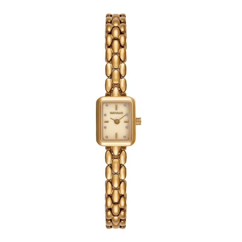 DESCRIÇÃO DO PRODUTO: Vidro: Cristal MineralFunções: AnalógicoResistencia à água: 30 MCaracterísticas: com caixa de Aço Inoxidável e pulseira de Aço Inoxidável Estilo BraceleteDiâmetro da caixa: 1,4 cm x 1,8 cmFundo de PressãoAlimentação do Maquinário: BateriaMostrador Madreperola Bege com PedrasMecanismo JaponêsGarantia de 2 anos