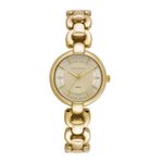 DESCRIÇÃO DO PRODUTO: Vidro: Cristal MineralFunções: AnalógicoResistencia à água: 50 MCaracterísticas: com caixa de Metal e pulseira de Metal Estilo BraceleteDiâmetro da caixa: 3,0 cmFundo RosqueadoAlimentação do Maquinário: BateriaMostrador Dourado com pedrasMovimento JaponêsGarantia de 2 anos