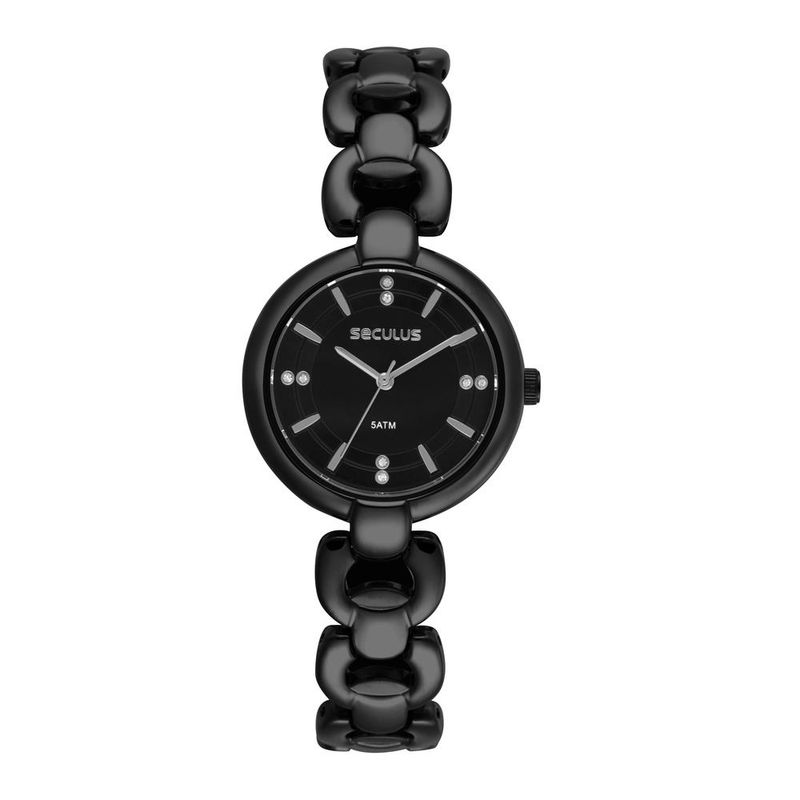 DESCRIÇÃO DO PRODUTO: Vidro: Cristal MineralFunções: AnalógicoResistencia à água: 50 MCaracterísticas: com caixa de Metal e pulseira de Metal Estilo BraceleteDiâmetro da caixa: 3,0 cmFundo RosqueadoAlimentação do Maquinário: BateriaMostrador Preto com pedrasMovimento JaponêsGarantia de 2 anos