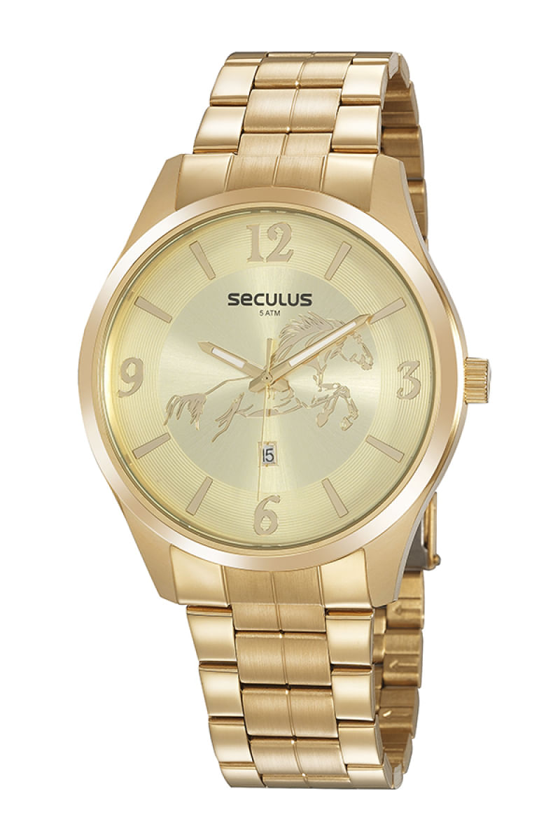 Detalhes Compre o Relógio Seculus Masculino Long Life 20786GPSVDA2 na Eclock, a maior loja de relógios do Brasil. Vamos conhecer um pouco mais sobre o produto? Possui mecanismo Analógico, a pulseira é na cor Dourado, fabricada em Aço, com 26 cm de comprimento e possui Fecho Dobrável com Trava. A Caixa (peça onde fica o mostrador) é fabricada em Aço, mede 4,6 cm de diâmetro, sem considerar a coroa, e 1,1 cm de espessura, o que é considerado tamanho Grande para relógios do gênero Masculino. O Relógio Seculus Masculino Long Life 20786GPSVDA2 tem nível de resistência à água especificado em 5 ATM. Com relação as funções adicionais do relógio: possui Calendário Analógico com Data e Marcadores com Illuminator. É Fabricado por Seculus da Amazônia Indústria e Comércio SA.tem Garantia de 2 Anos com o Fornecedor. Descrição Referência/SKU 20786GPSVDA2 Formato da Caixa Redondo Marcas Seculus Gênero Masculino Cor Dourado Tamanho da Caixa Grande Material da Pulseira Aço Mecanismo Analógico Comprimento do Relógio 26 cm Pulseira Ajustável Sim Material da Caixa Aço Espessura da Caixa 1,1 cm Dimensões da Caixa 4,6 cm de diâmetro Material do Vidro Cristal Mineral Nível de Resistência à Água 5 ATM Calendário Analógico com Data Marcadores com Illuminator O que Acompanha o Produto Estojo Original Acessórios Originais (correspondentes a cada modelo) Manual em Português Certificado de Garantia do Fabricante Nota Fiscal Eletrônica