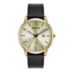 DESCRIÇÃO DO PRODUTO: Vidro: Cristal MineralFunções: Analógico, CalendárioResistencia à água: 50 MCaracterísticas: com caixa de Aço inoxidável e pulseira de Couro Legítimo PretoDiâmetro da caixa: 4,2 cmFundo de RoscaAlimentação do Maquinário: BateriaMostrador DouradoGarantia de 2 anos