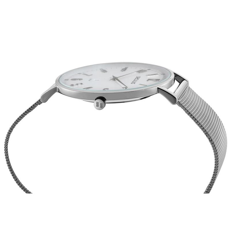 DESCRIÇÃO DO PRODUTO: Vidro: Cristal MineralFunções: Analógico, CalendárioResistencia à água: 50 MCaracterísticas: com caixa de Aço inoxidável e pulseira de Malha de Aço MeshDiâmetro da caixa: 4,4 cmFundo de PressãoAlimentação do Maquinário: BateriaMostrador branco com todos os númerosGarantia de 2 anos