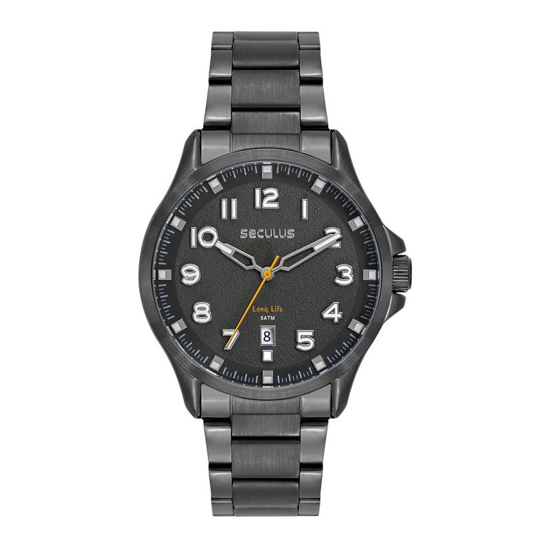 DESCRIÇÃO DO PRODUTO: Vidro: Cristal MineralFunções: Analógico, CalendárioResistencia à água: 50 MCaracterísticas: com caixa de Aço inoxidável e pulseira de Aço InoxidávelDiâmetro da caixa: 4,3 cmFundo de RoscaLinha Long LifeAlimentação do Maquinário: BateriaMostrador Grafite com númerosGarantia de 2 anos