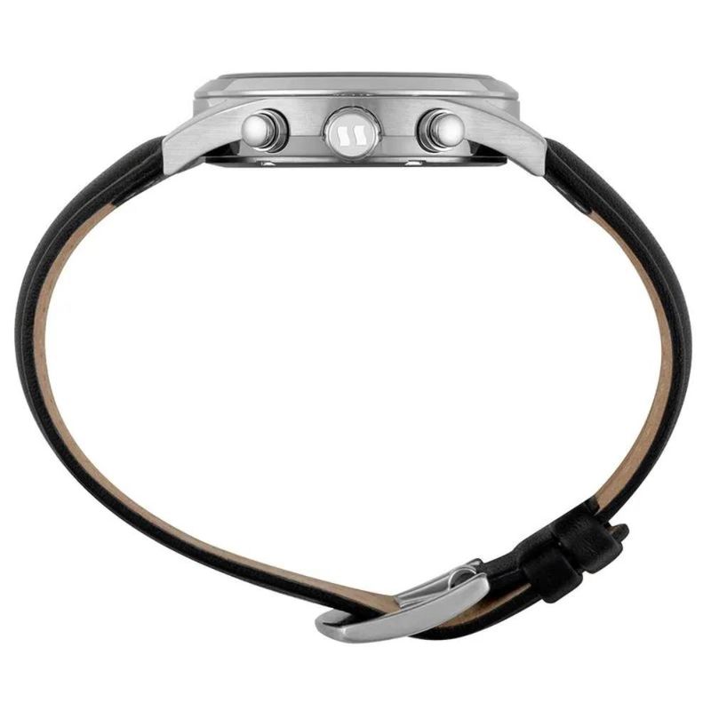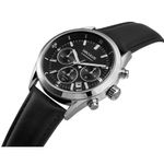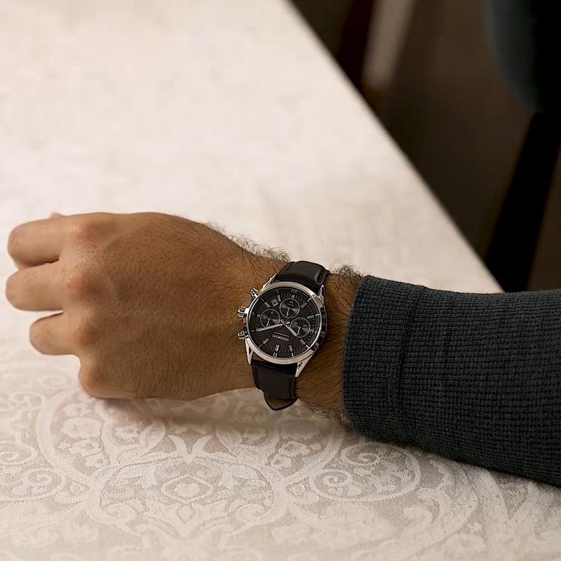 DESCRIÇÃO DO PRODUTO: Vidro: Cristal MineralFunções: Cronógrafo, Calendário, AnalógicoResistencia à água: 100 MCaracterísticas: com caixa de Aço inoxidável e pulseira de Couro Legítimo PretoDiâmetro da caixa: 4,0 cmFundo de RoscaAlimentação do Maquinário: BateriaMostrador Preto Garantia de 2 anos