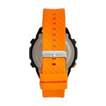 DESCRIÇÃO DO PRODUTO: Funções: Digital, Iluminação, Alarme, Cronógrafo, Timer, Dual TimeResistência à Água: 50 mDiâmetro da Caixa: 52 mmCaracterísticas: com caixa em Policarbonato Preta e pulseira em Silicone LaranjaFundo ParafusadoVidro: AcrílicoAro Fixo PretoAlimentação do Maquinário: BateriaGarantia de 1 ano