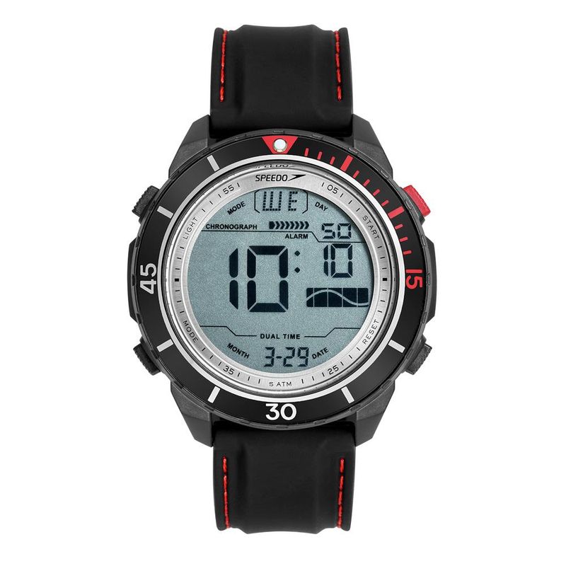 DESCRIÇÃO DO PRODUTO: Funções: Digital, Iluminação, Alarme, Cronógrafo, Timer, Dual TimeResistência à Água: 50 mDiâmetro da Caixa: 51 mmCaracterísticas: com caixa em Policarbonato Preta e pulseira em Silicone PretoFundo ParafusadoVidro: AcrílicoAro Fixo PretoAlimentação do Maquinário: BateriaGarantia de 1 ano