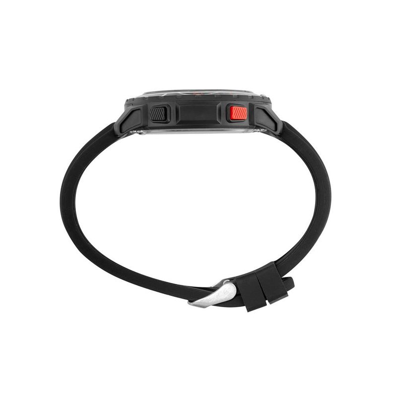 DESCRIÇÃO DO PRODUTO: Funções: Digital, Iluminação, Alarme, Cronógrafo, Timer, Dual TimeResistência à Água: 50 mDiâmetro da Caixa: 51 mmCaracterísticas: com caixa em Policarbonato Preta e pulseira em Silicone PretoFundo ParafusadoVidro: AcrílicoAro Fixo PretoAlimentação do Maquinário: BateriaGarantia de 1 ano