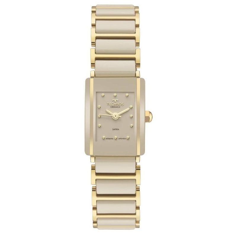 Relógio Ceramic apresenta um novo lançamento de design sofisticado, definido pela lente de safira e aplicação de cerâmica. Sua caixa quadrada e seu mostrador na cor bege contam com assinatura de linha, além do aro facetado de cerâmica. Sua pulseira é complementada por aço inoxidável e aço com cerâmica. Produto 100% em aço inoxidável, banhado em dourado, máquina quartz Japonesa Miyota e resistência à água de 50 metros. Compre online seu Relógio Technos Feminino Ceramic 5Y30XX/2X Original. Acompanha certificado de garantia, estojo e manual. Enviamos para todo o Brasil. Referência de Fábrica: 5Y30XX/2X Marca: Technos Mecanismo: Analógico Material da pulseira: Aço Inox Material da caixa: Aço Inox Material do Vidro: Safira Cor da pulseira: Nude/Dourado Cor da caixa: Nude/Dourado Cor do mostrador: Nude Formato da Caixa: Quadrado Resistência à água: 5 Atm Todos os nossos relógios são entregues em embalagem original e possuem certificado de garantia. Aproveite e veja todos os nossos modelos de relógios