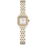 Descrição do Produto: Caixa de Aço InoxPulseira de Aço InoxFundo de PressãoResistente à Água 3 AtmDiâmetro / Largura da Caixa: 16.00 MM x 16.00 MMVidro de Cristal MineralFunções: Analógico, Mini RelógioAlimentação do Maquinário: BateriaMostrador prateadoAro Externo de pedrasPrateado com DouradoGarantia de 1 Ano