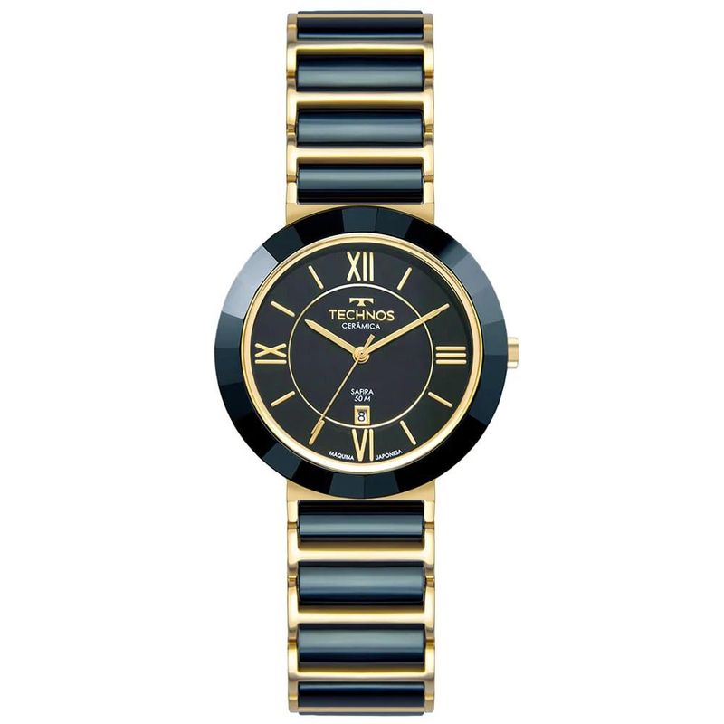 Descrição do Produto: Caixa de Aço InoxPulseira de Aço Inox com detalhes em cerâmica azulFundo RosqueadoResistente à Água 5 AtmDiâmetro / Largura da Caixa: 34.00 MMVidro de SafiraFunções: Analógico, CalendárioMaquina JaponesaAlimentação do Maquinário: BateriaMostrador Azul com algarismos romanosAro Externo Fixo de Cerâmica Azul FacetadoGarantia de 1 Ano