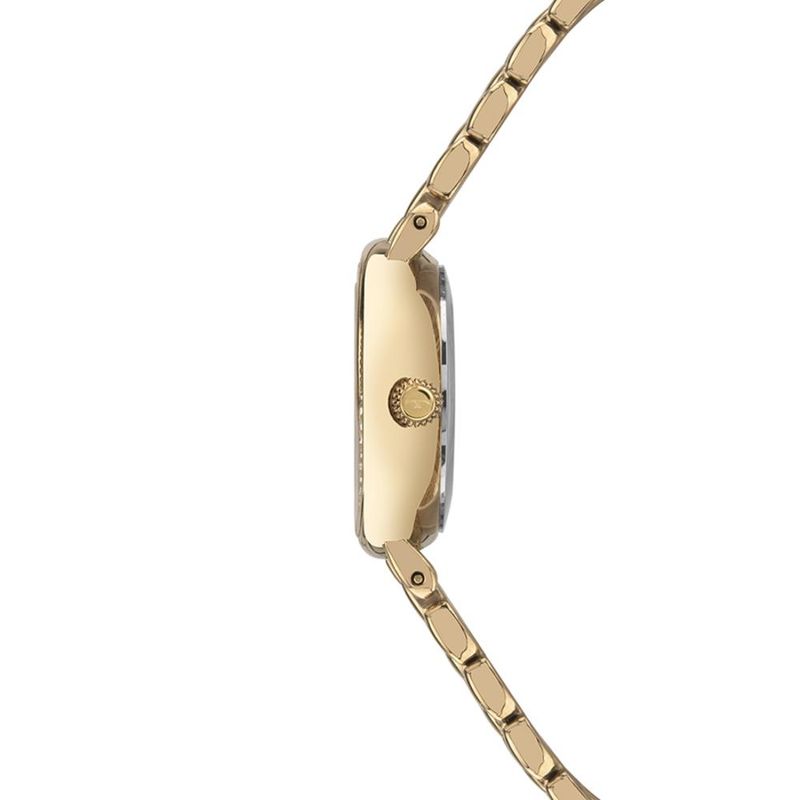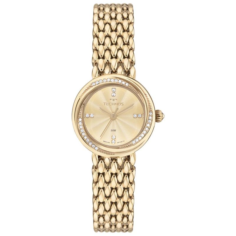 Descrição do Produto: Caixa de Aço InoxPulseira de Aço Inox Estilo BraceleteFundo de PressãoResistente à Água 5 AtmDiâmetro / Largura da Caixa: 26.00 MMVidro de Cristal MineralFunções: AnalógicoMaquina JaponesaAlimentação do Maquinário: BateriaMostrador Dourado com pedrasCom pedras externasGarantia de 1 Ano