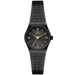 Descrição do Produto: Caixa de Aço InoxPulseira de Aço InoxFundo de PressãoResistente à Água 5 AtmDiâmetro / Largura da Caixa: 23.00 MMVidro de Cristal MineralFunções: AnalógicoMaquina JaponesaAlimentação do Maquinário: BateriaMostrador PretoGarantia de 1 Ano