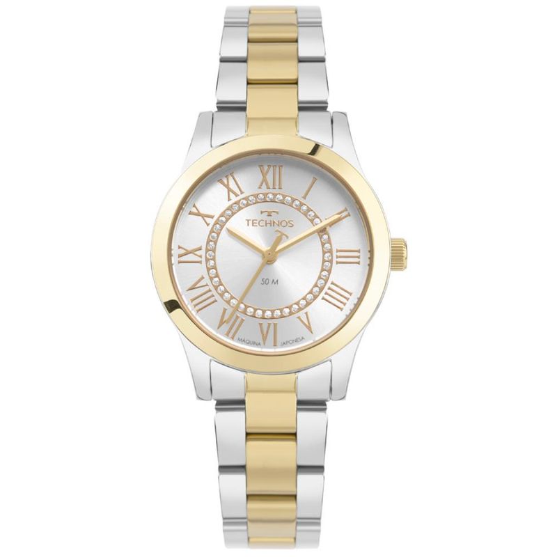 Descrição do Produto: Caixa de Aço InoxPulseira de Aço InoxFundo de PressãoResistente à Água 5 AtmDiâmetro / Largura da Caixa: 32.00 MMVidro de Cristal MineralFunções: AnalógicoMaquina JaponesaAlimentação do Maquinário: BateriaMostrador Prateado com algarismos romanos e pedrasPrateado com DouradoGarantia de 1 Ano