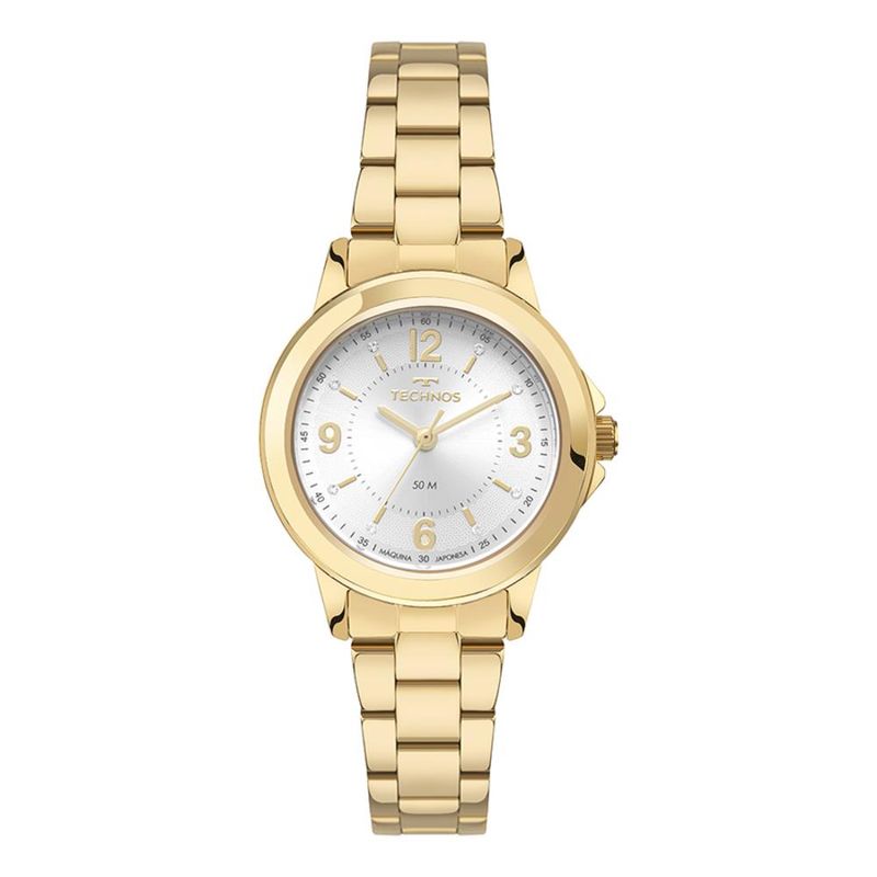 Descrição do Produto: Caixa de Aço InoxPulseira de Aço InoxFundo de PressãoResistente à Água 5 AtmDiâmetro / Largura da Caixa: 30.00 MMVidro de Cristal MineralFunções: AnalógicoMaquina JaponesaAlimentação do Maquinário: BateriaMostrador Prateado com números e pedrasGarantia de 1 Ano