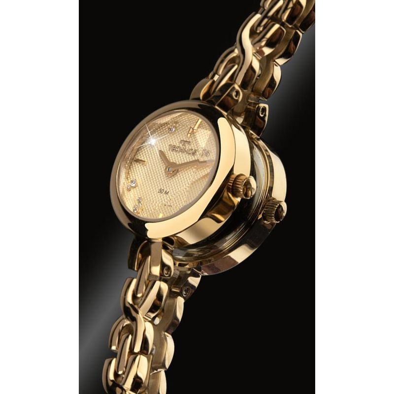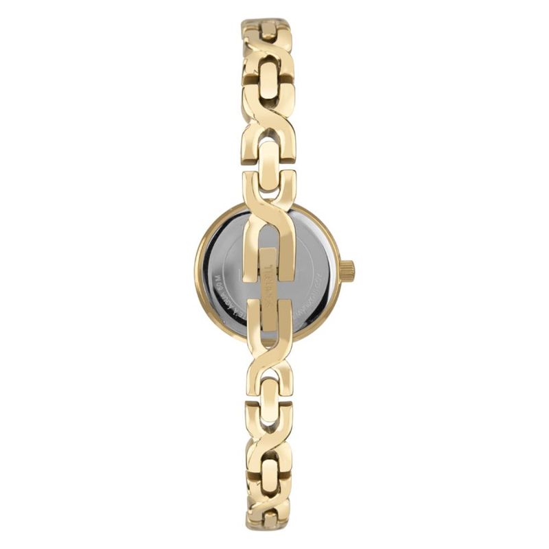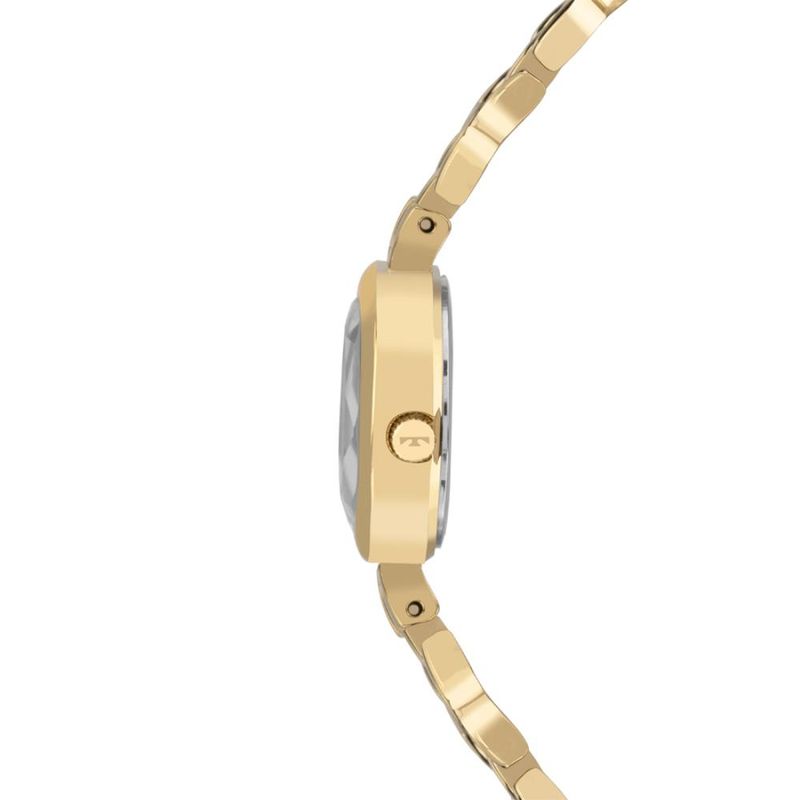Descrição do Produto: Caixa de Aço InoxPulseira de Aço Inox Estilo BraceleteFundo de PressãoResistente à Água 5 AtmDiâmetro / Largura da Caixa: 20.00 MMVidro de Cristal Mineral BisotêFunções: AnalógicoMaquina JaponesaAlimentação do Maquinário: BateriaMostrador Dourado com pedrasGarantia de 1 Ano