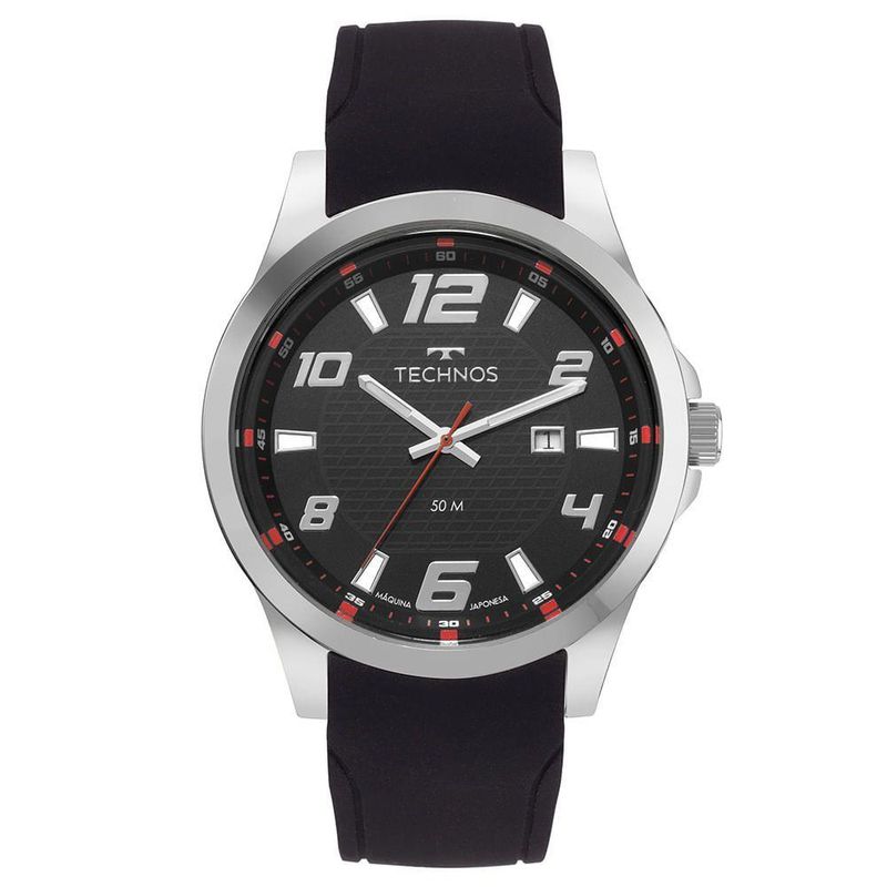 Relógio Technos Masculino Racer Basico Prata - 2115UBC/2PRelógio Technos Racer apresenta seu novo lançamento de design esportivo, que conta com mostrador de fácil leitura na cor preto com numeração arábica, detalhes em cores de destaque e analógico com data na posição de 3 horas. Produto 100% em aço inoxidável, banhado em prata, com resistência à água de 50 metros e pulseira de silicone na cor preto.Banho: PrataTipo: AnalógicoCor da Caixa: PrataMaterial da Pulseira: SiliconeFormato: RedondoCor do Mostrador: PretoGarantia: 12 mesesCor da Pulseira: PretoLargura da Caixa (cm): 4,5Resistência à Água: 5 ATMCor: PrataTamanho: GrandeGênero: Masculino