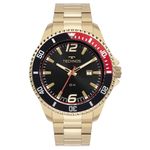 Relógio Technos Masculino Racer Dourado - 2115ncm/1p 2115ncm/1pRelógio Technos Racer com design esportivo, inspirado no universo automobilístico. Ele apresenta um diferenciado aro de alumínio, bicolor preto/vermelho, com acabamento dentado e marcações em relevo. Produto em aço inoxidável, com banho dourado, máquina quartz japonesa Miyota, calendário e resistência à água de 50m. Tamanho de caixa 46mm.Banho - DouradoTipo - AnalógicoCor da Caixa - DouradoFormato - RedondoCor do Mostrador - PretoGarantia - 12 mesesCor da Pulseira - DouradoLargura da Caixa (cm) - 4,6Resistência à Água - 5 ATMplaintext_description_meli - Relógio Technos Masculino Racer Dourado - 2115NCM/1Pmeli_title - Relógio Technos Masculino Racer DouradoModelo_ML - Relógio Technos Masculino Racer Dourado - 2115NCM/1PCor - DouradoTamanho - GrandeGênero - Masculino