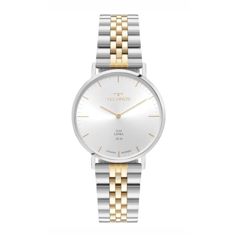 Descrição do Produto: Caixa de AçoPulseira de AçoFundo de PressãoResistente à Água 5 AtmDiâmetro / Largura da Caixa: 40.00 MMEspessura da Caixa: 8.00 MMVidro: SafiraFunções: Analógico, SlimAlimentação do Maquinário: BateriaMostrador Prateado com detalhes em DouradoMaquinário JaponêsPrateado com Dourado Garantia de 1 Ano