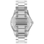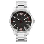 Descrição do Produto: Caixa de AçoPulseira de AçoFundo RosqueadoResistente à Água 5 AtmDiâmetro / Largura da Caixa: 45.00 MMFunções: Analógico, CalendárioAlimentação do Maquinário: BateriaMostrador Preto com Números e detalhes em vermelhoMaquinário Japonês Garantia de 1 Ano