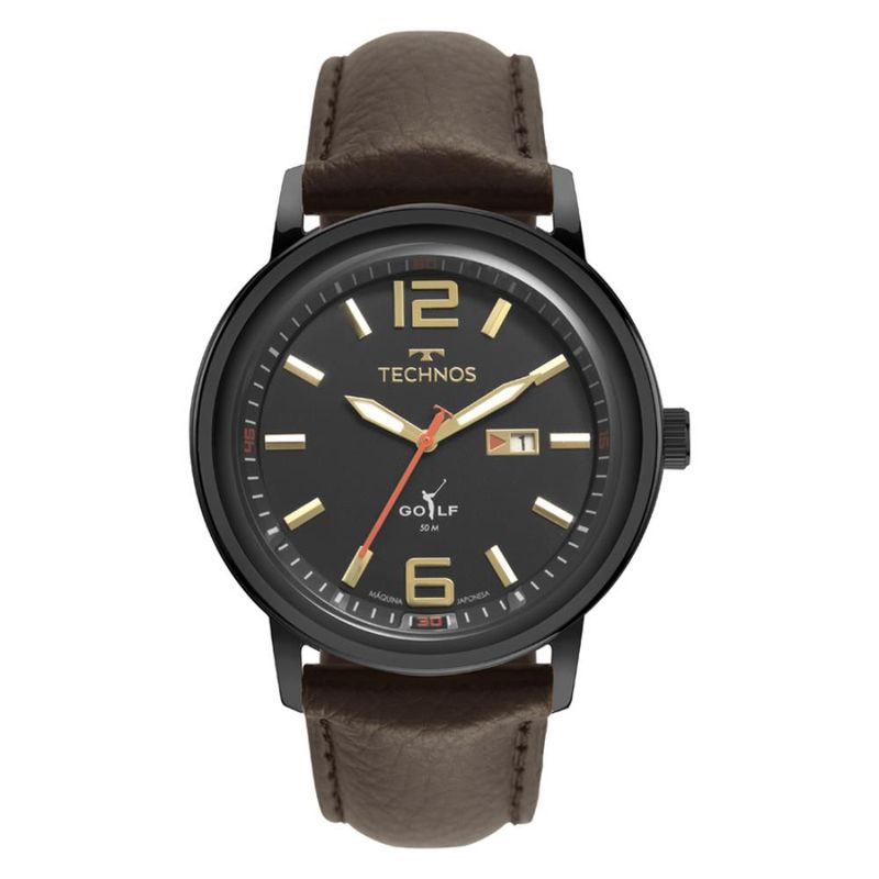 Descrição do Produto: Caixa de AçoPulseira de Couro Legítimo MarromFundo de RoscaResistente à Água 5 AtmDiâmetro / Largura da Caixa: 46.00 MMFunções: Analógico, CalendárioAlimentação do Maquinário: BateriaMostrador Preto com NúmerosLinha: Technos GolfMaquinário Japonês Garantia de 1 Ano