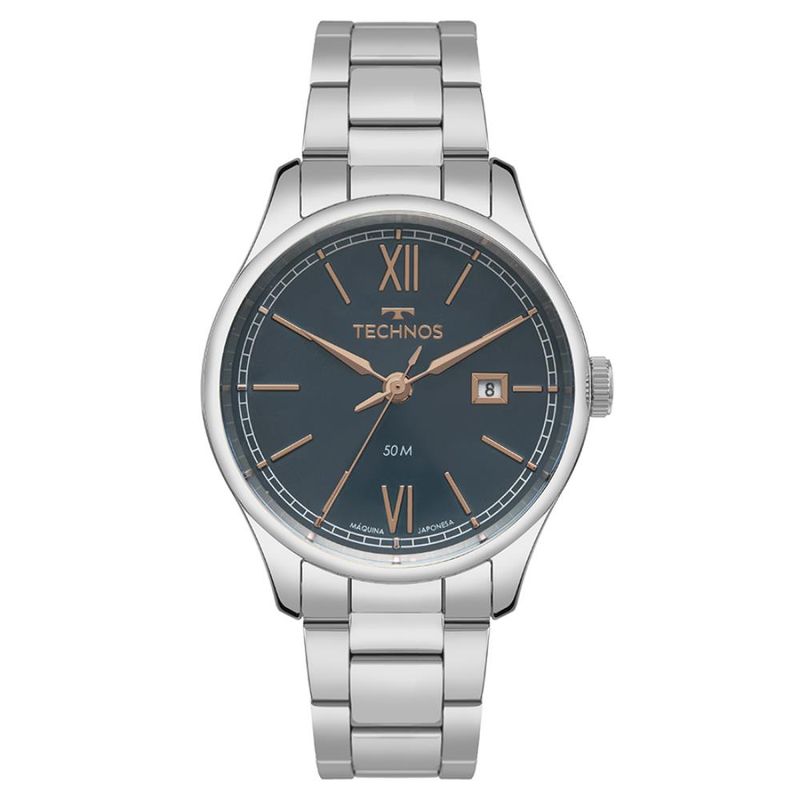 Descrição do Produto: Caixa de AçoPulseira de AçoFundo de RoscaResistente à Água 5 AtmDiâmetro / Largura da Caixa: 41.00 MMFunções: Analógico, CalendárioAlimentação do Maquinário: BateriaMostrador Azul com Algarismos RomanosMaquinário Japonês Garantia de 1 Ano