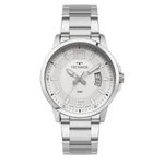Descrição do Produto: Caixa de AçoPulseira de AçoFundo de PressãoResistente à Água 5 AtmDiâmetro / Largura da Caixa: 43.00 MMFunções: Analógico, CalendárioAlimentação do Maquinário: BateriaMostrador Prateado com NúmerosMaquinário Japonês Garantia de 1 Ano