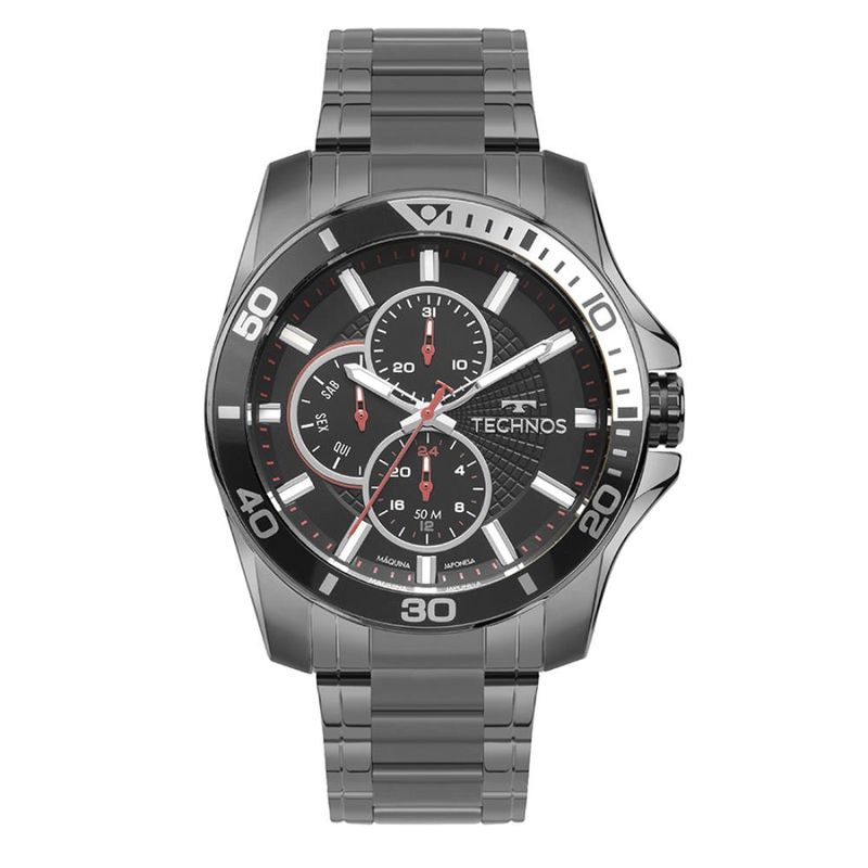 Descrição do Produto: Caixa de AçoPulseira de AçoFundo de RoscaResistente à Água 5 AtmDiâmetro / Largura da Caixa: 46.00 MMFunções: Analógico, MultifunçãoAlimentação do Maquinário: BateriaMostrador Preto com detalhes em vermelhoMáquina JaponesaAro Fixo Preto/Prateado Garantia de 1 Ano
