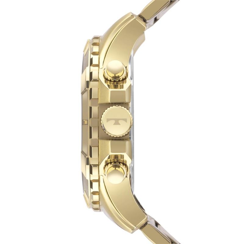 Descrição do Produto: Caixa de AçoPulseira de AçoFundo RosqueadoResistente à Água 10 AtmVidro: Cristal MineralDiâmetro / Largura da Caixa: 50.00 MMFunções: Analógico, Cronógrafo, CalendárioAlimentação do maquinário: BateriaMostrador Azul com detalhes em dourado e pretoAro Fixo DouradoLinha: Technos LegacyGarantia de 1 Ano