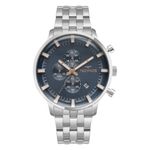Descrição do Produto: Caixa de AçoPulseira de AçoFundo RosqueadoResistente à Água 10 AtmVidro: Cristal MineralDiâmetro / Largura da Caixa: 45.00 MMFunções: Analógico, Cronógrafo, CalendárioAlimentação do maquinário: BateriaMostrador Azul com detalhes em roséGarantia de 1 Ano