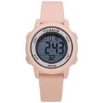 DESCRIÇÃO DO PRODUTO: Funções: Digital, Calendário, Iluminação, Alarme, CronógrafoResistência à Água: 50mDiâmetro da Caixa: 34 mmCaracterísticas: com caixa em Policarbonato Rosa e pulseira em Silicone RosaVidro: AcrílicoFundo ParafusadoAlimentação do maquinário: BateriaMostrador Rosa com detalhes em pretoGarantia de 1 Ano