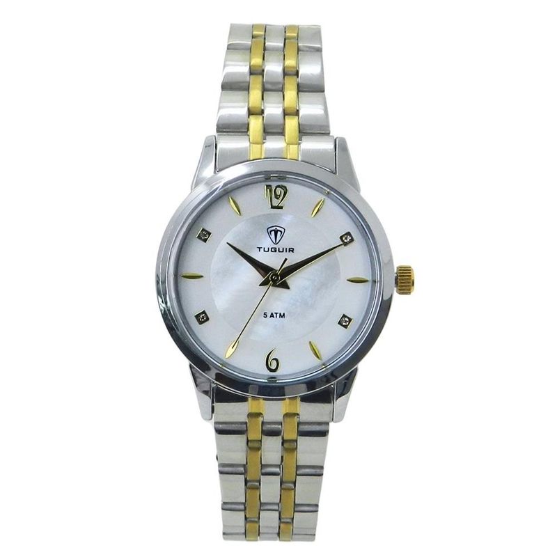DESCRIÇÃO DO PRODUTO: Funções: AnalógicoResistência à Água: 50mDiâmetro da Caixa: 32 mmCaracterísticas: com caixa em Metal e pulseira em AçoVidro: Cristal MineralFundo RosqueadoAlimentação do maquinário: BateriaMostrador Estilo Madreperola Branca com Números e PedrasMaquinário japonês+ Corrente e Pingente SemijoiaPrateado com DouradoGarantia de 1 Ano