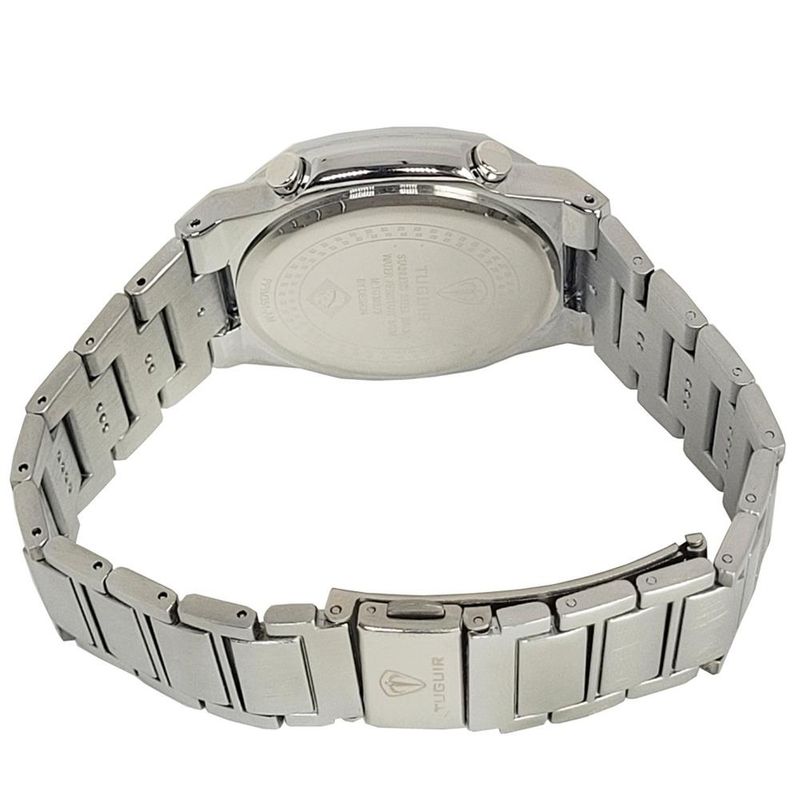 DESCRIÇÃO DO PRODUTO: Funções: Digital, Calendário, Iluminação, Alarme, Cronógrafo, Dual Time, TimerResistência à Água: 30mDiâmetro da Caixa: 42 mm x 38.00 mmCaracterísticas: com caixa em Resina e pulseira em AçoVidro: Cristal MineralFundo de PressãoAlimentação do maquinário: BateriaMostrador Preto com detalhes em BrancoGarantia de 1 Ano