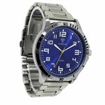 DESCRIÇÃO DO PRODUTO: Funções: AnalógicoResistência à Água: 50mDiâmetro da Caixa: 44 mmCaracterísticas: com caixa em Metal e pulseira em AçoVidro: Cristal MineralFundo RosqueadoAlimentação do maquinário: BateriaMostrador Azul com todos os númerosAro Fixo PrateadoGarantia de 1 Ano