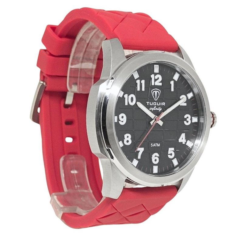 DESCRIÇÃO DO PRODUTO: Funções: AnalógicoResistência à Água: 50mDiâmetro da Caixa: 46 mmCaracterísticas: com caixa em Aço e pulseira em Silicone VermelhoVidro: Cristal MineralFundo RosqueadoAlimentação do maquinário: BateriaMostrador Preto com Todos os NúmerosLinha: Tuguir InfinityGarantia de 1 Ano