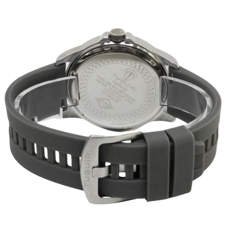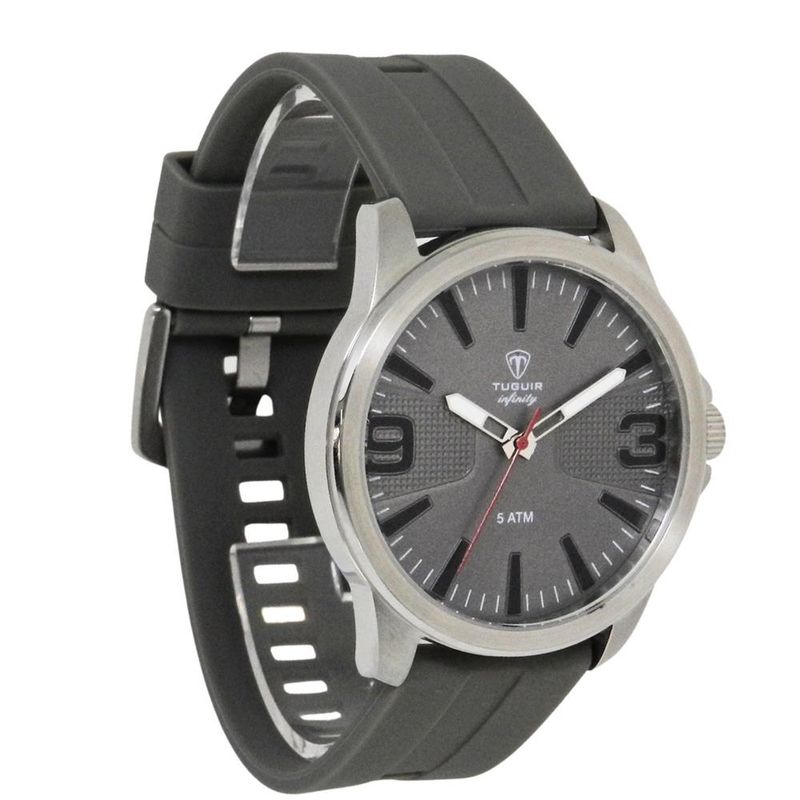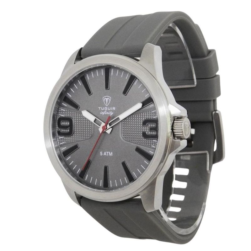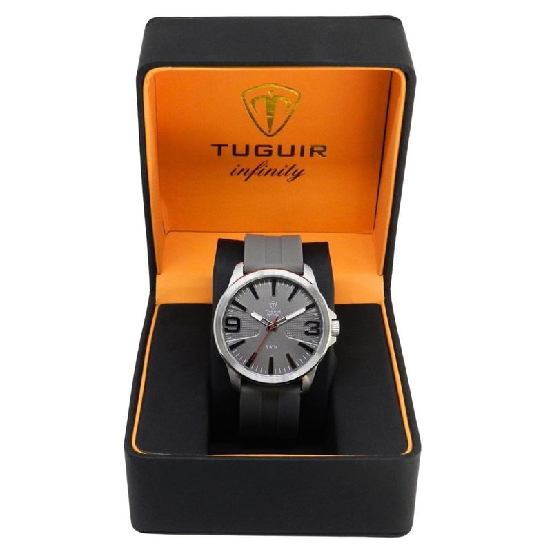 DESCRIÇÃO DO PRODUTO: Funções: AnalógicoResistência à Água: 50mDiâmetro da Caixa: 43 mmCaracterísticas: com caixa em Aço e pulseira em Silicone CinzaVidro: Cristal MineralFundo RosqueadoAlimentação do maquinário: BateriaMostrador Cinza com NúmerosLinha: Tuguir InfinityGarantia de 1 Ano
